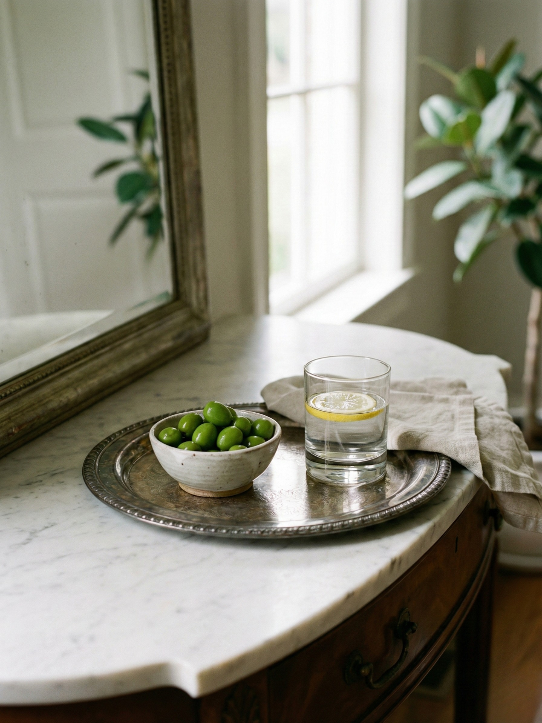 I light candles in a specific order: living room first, then hallway, then dining area. I put on music about forty minutes before guests arrive. I set out a small dish of olives or almonds, even if we're about to sit down to dinner.
